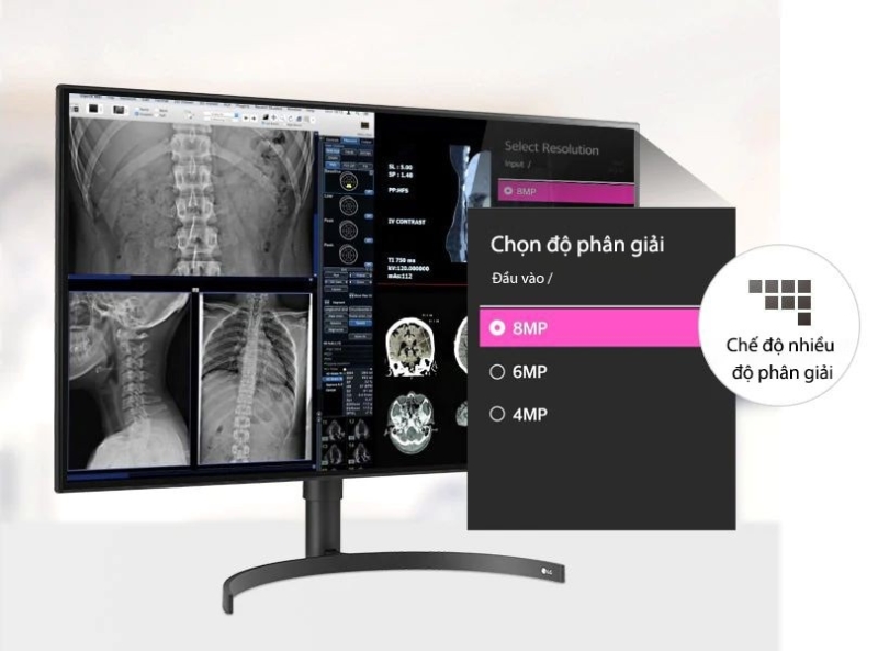 - Chế độ đa phân giải - Đa mục đích: Vận hành màn hình 32HL512D ở độ phân giải 4MP hoặc 6MP thấp hơn và sử dụng như nhiều màn hình khác nhau. Chuyển về độ phân giải 8MP để đọc ảnh.