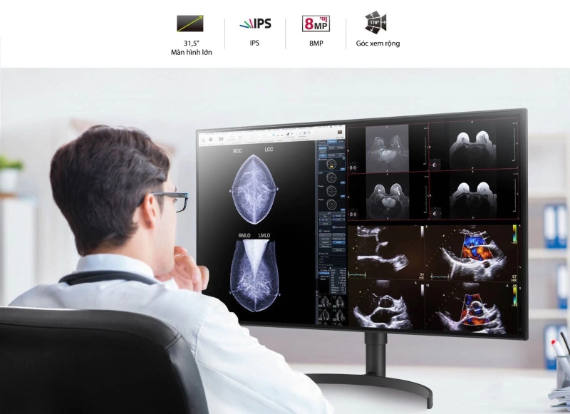 - Những chiếc màn hình đánh giá lâm sàng LG 32HL512D kích thước 31,5 inch, độ phân giải 8MP cùng tấm nền IPS mang đến chất lượng hình ảnh y tế hiển thị sắc nét, tạo điều kiện chẩn đoán chính xác. Góc nhìn rộng 178 ° cho phép bệnh nhân và bác sĩ xem hình ảnh được tái tạo chính xác với độ méo hình tối thiểu.